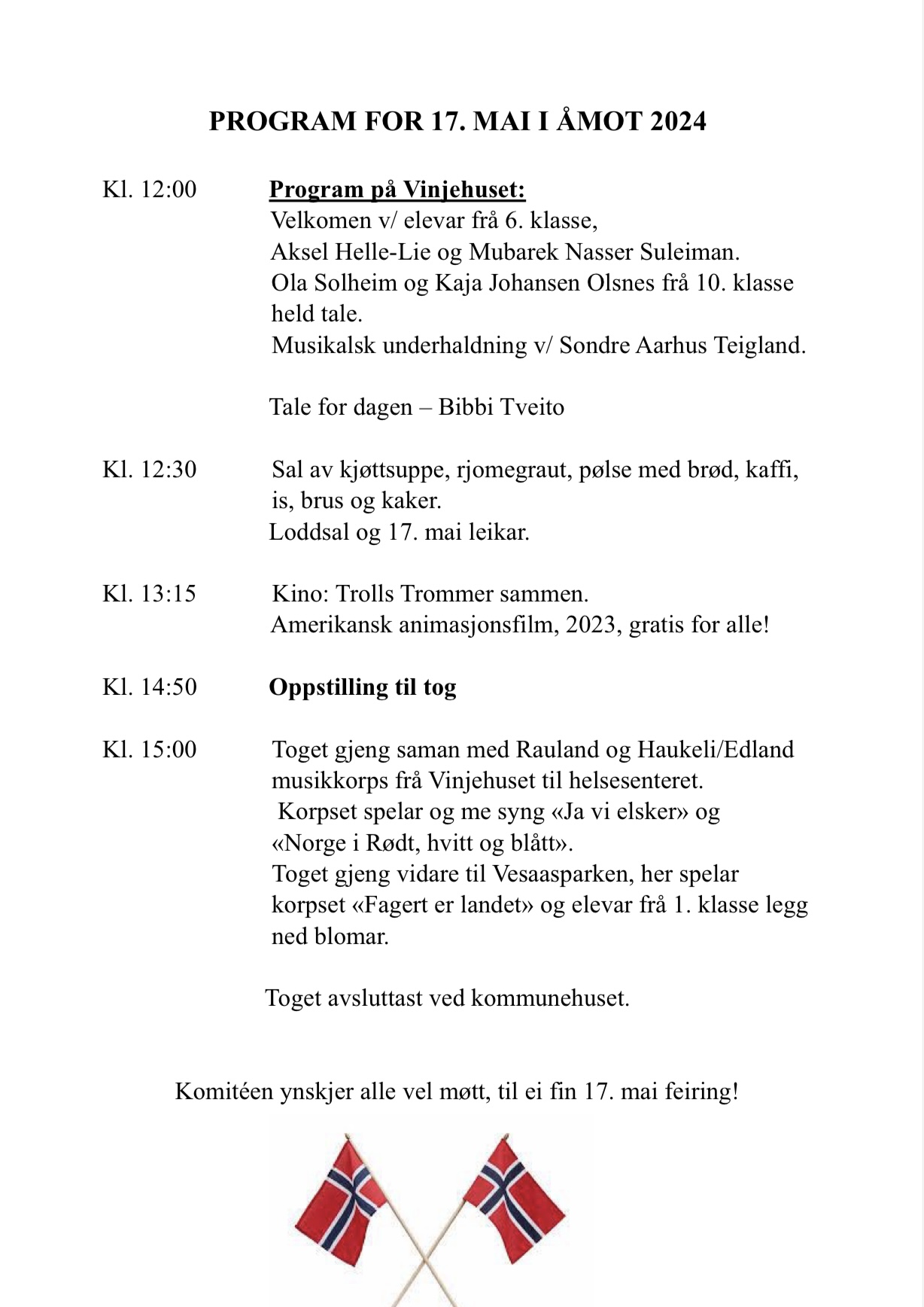 Below you can see the program for Åmot, Øyfjell and Vinjar.
