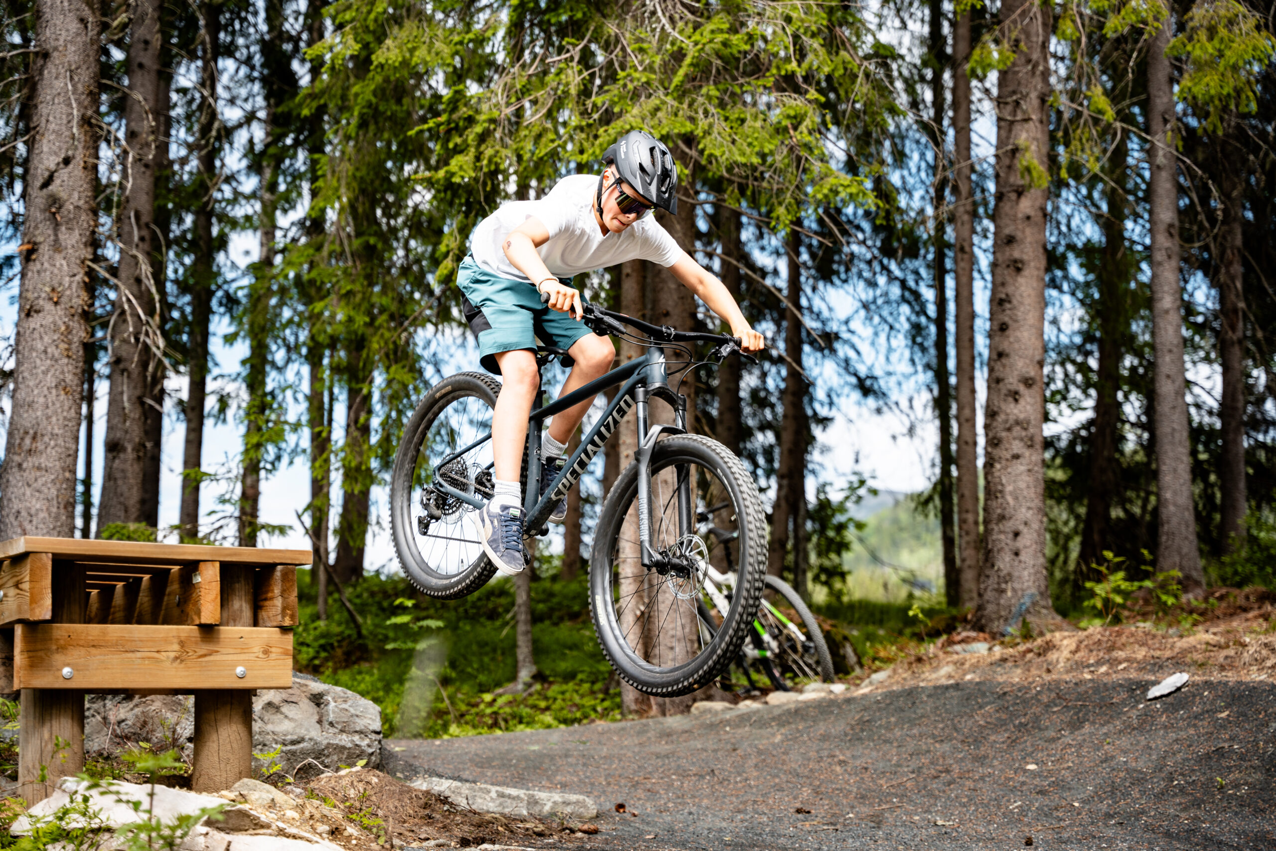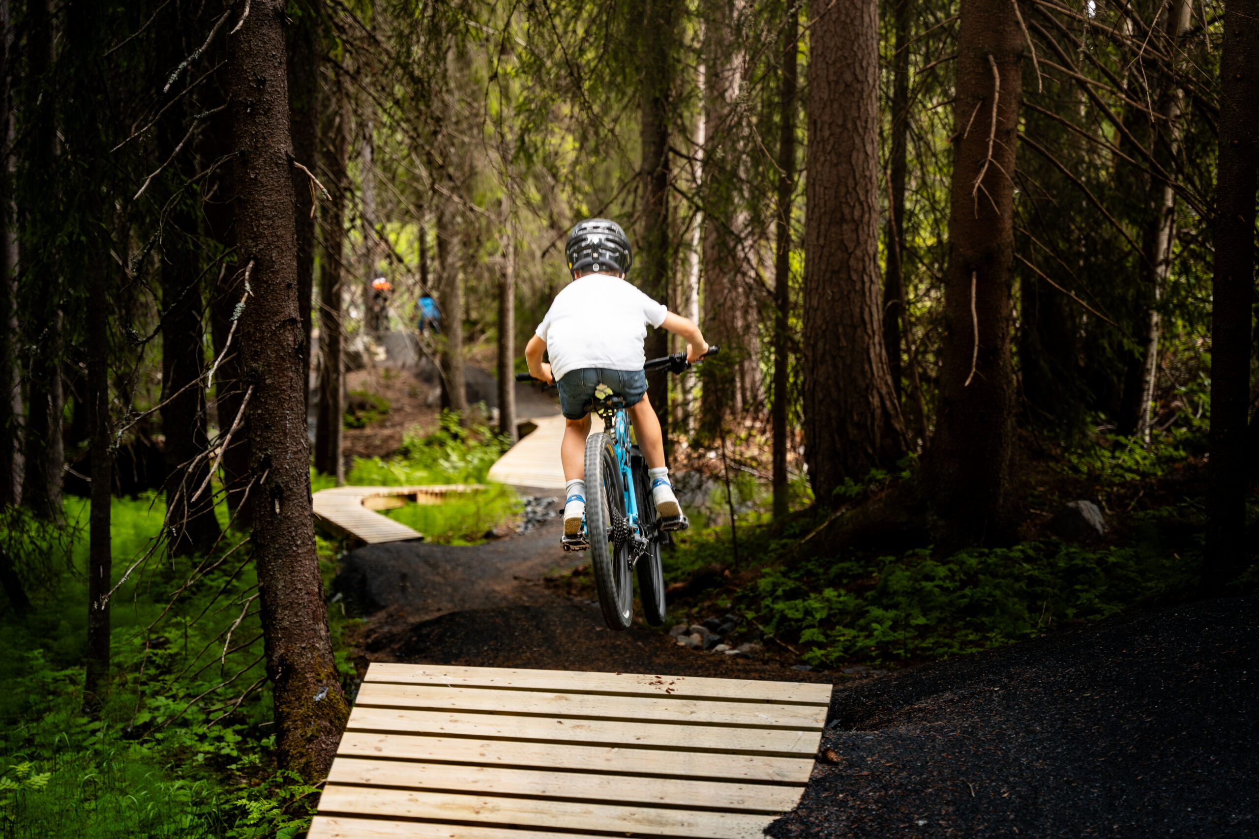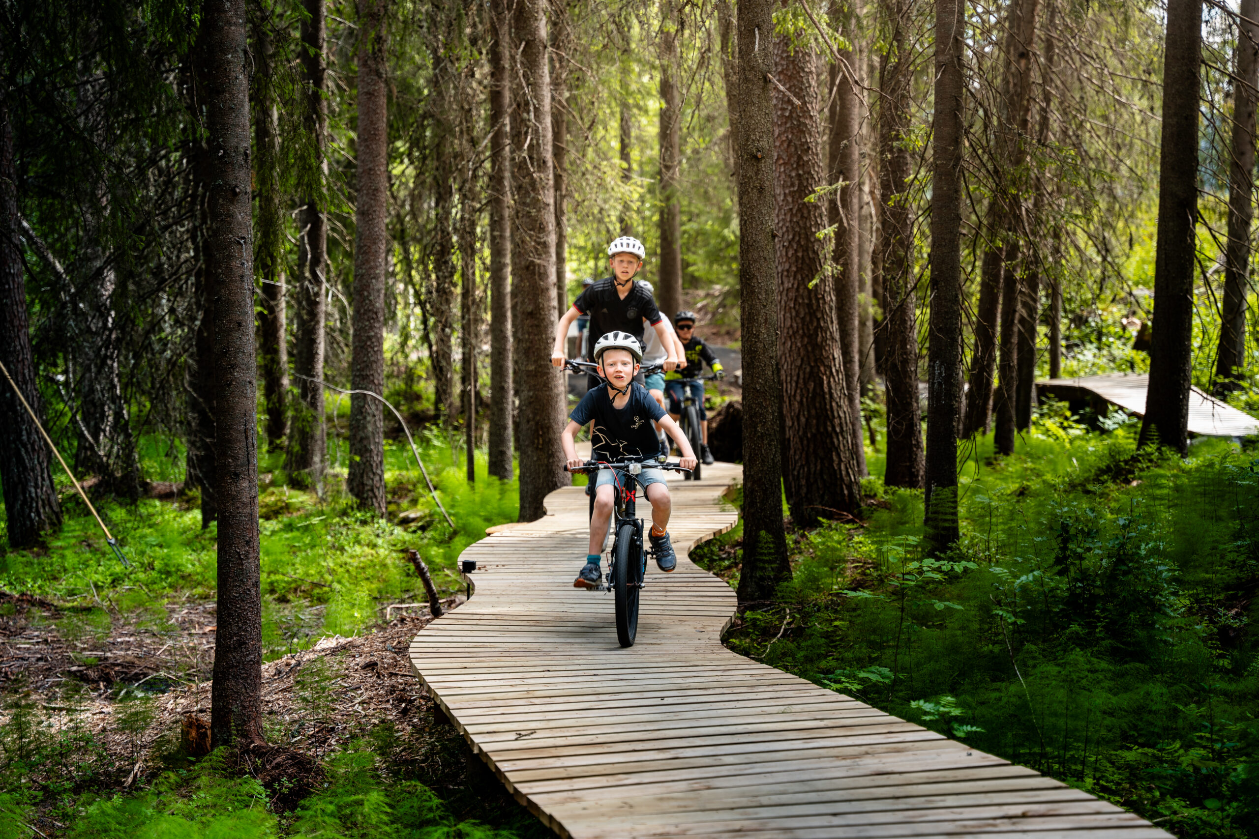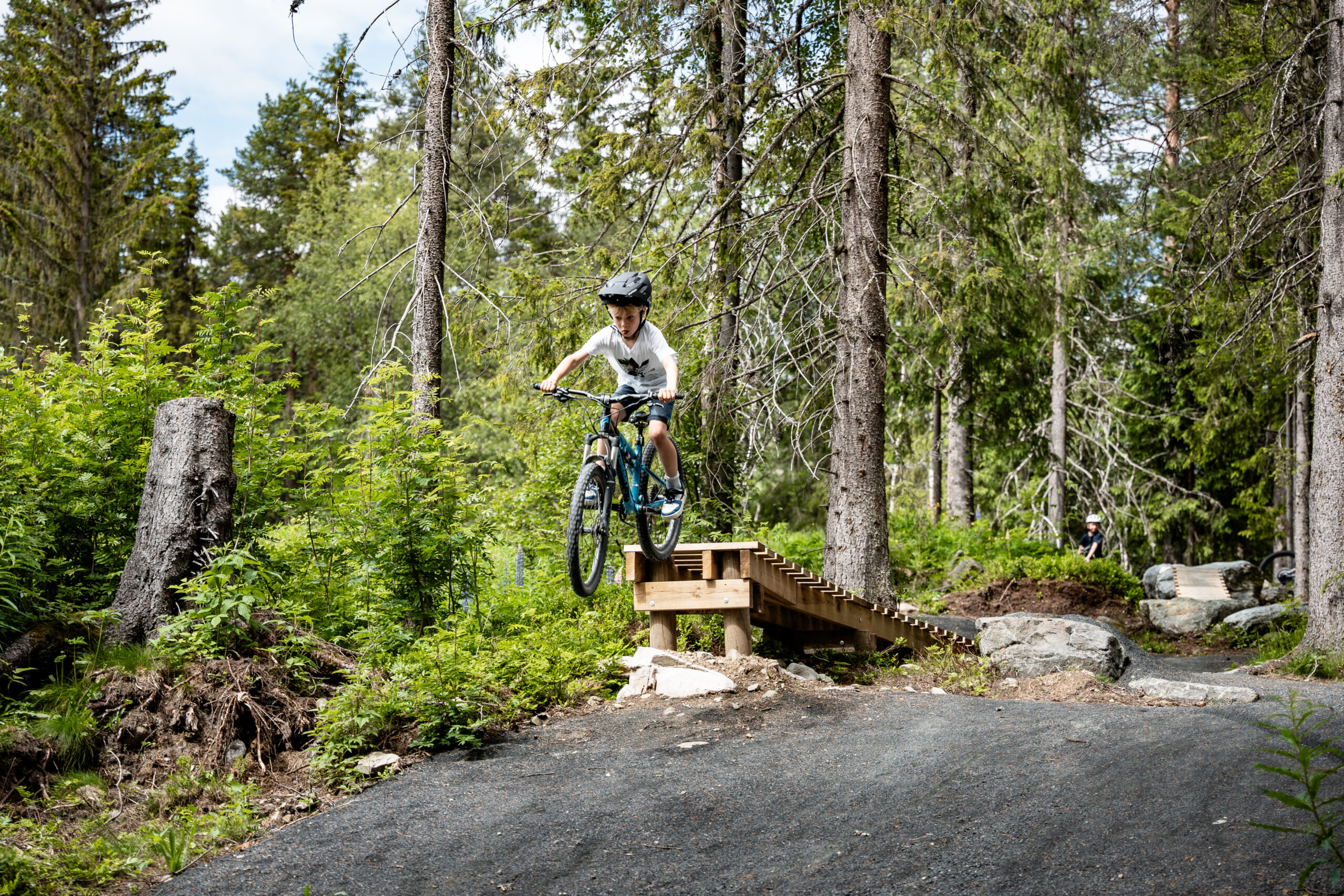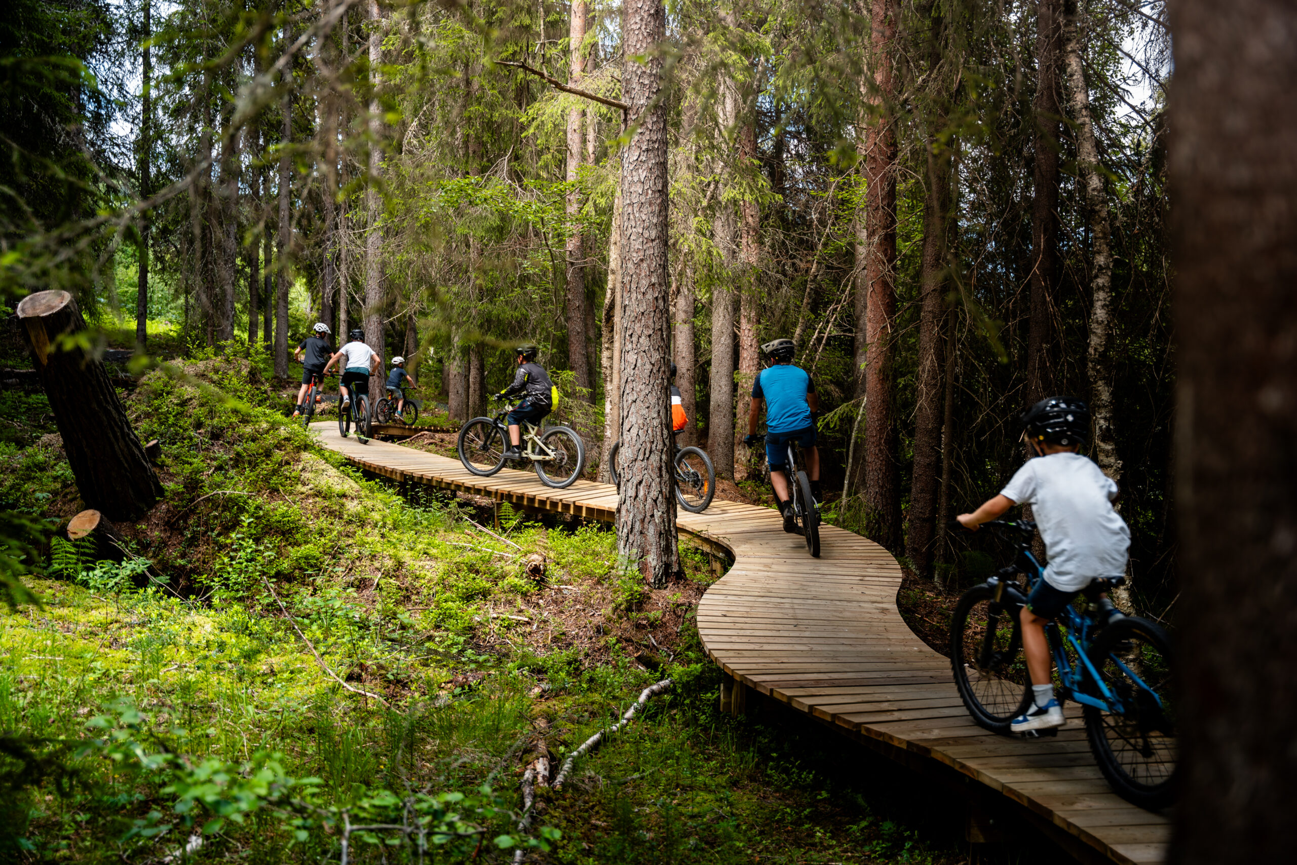 Lett tilgjengeleg i skogen kan de leike dykk gjennom den 900 meter lange, tilrettelagde flytløypa for sykkel. Løypa har blå gradering og passar godt for born frå om lag 7 år og oppover.