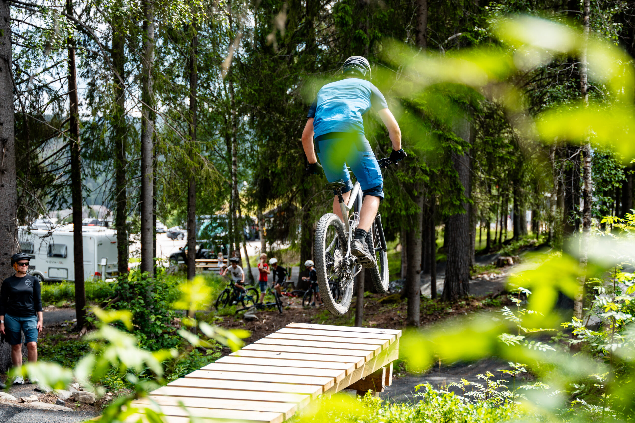 Langs løypa finn du element som små hopp og dropp. Desse kan nyttast av dei som ønskjer litt ekstra utfordring, men kan også trillast forbi. Slik passar løypa for ulike aldrar og ferdigheitsnivå – og legg godt til rette for leik, meistring og gode ferieminne.