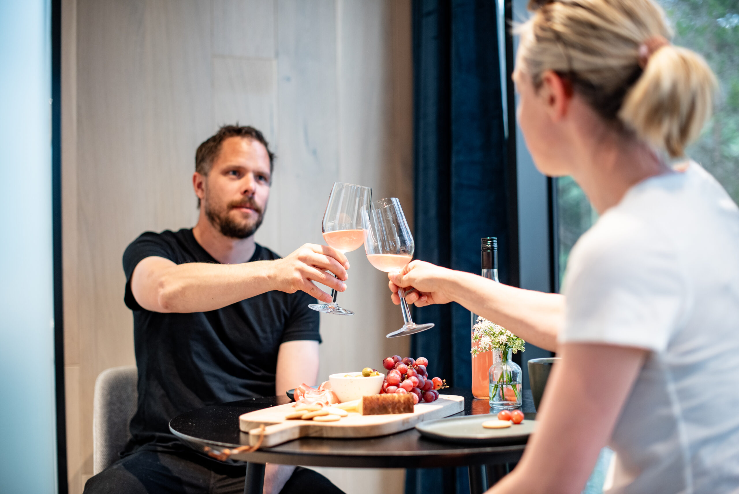 Hotellrommet er bygde med glasveggar som speglar landskapet rundt og gir ei heilt spesiell kjensle av å vere ute og inne på same tid. Rommet har god seng for to personar, bad og kjøkenkrok. Når du bur i hotellrommet, har du reservert bruk av badstova på kveldstid frå kl. 19.00.